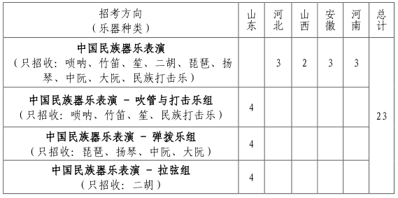 (四)对山东省音乐类考生,我校将根据考生志愿填报的招考方向重新计算考生专业成绩(考生乐器或唱法须与我校招考方向要求一致)。专业成绩计算方法如下: